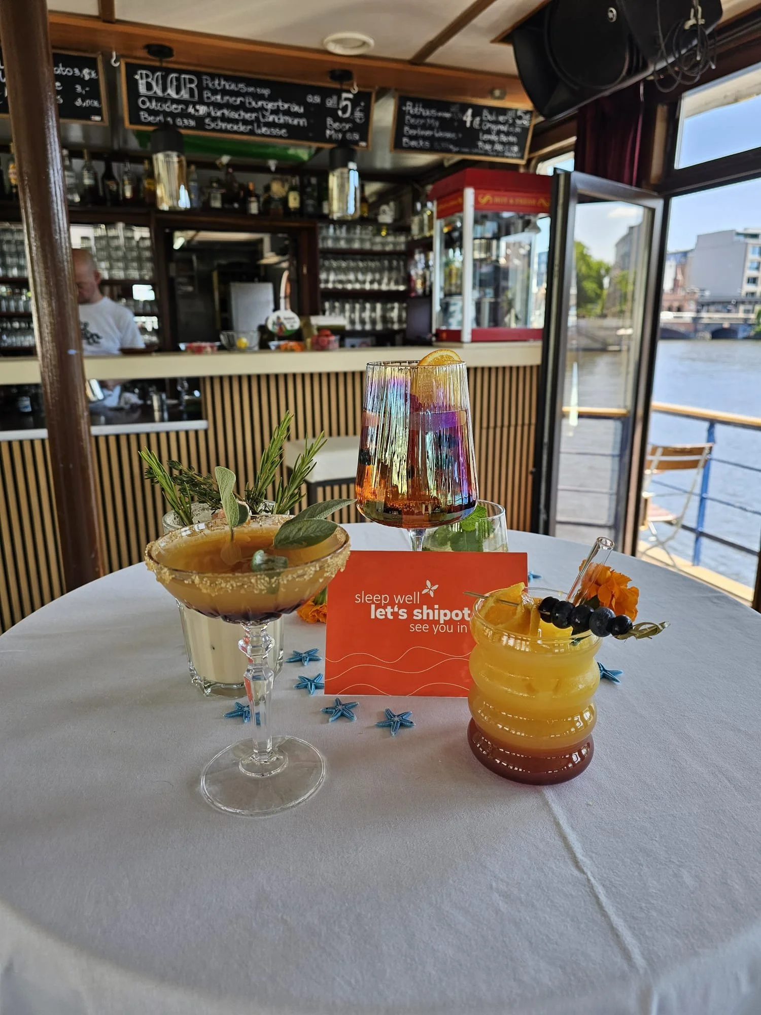 Ob für einen Aperitif in der Abendsonne oder als Treffpunkt mit Freunden – die offene Lounge ist der perfekte Ort, um das Wochenende stilvoll zu beginnen. Unser Team sorgt für das passende Ambiente, während sich die Stadt im Fluss spiegelt und der Himmel langsam in Farbe taucht. Wer einmal hier war, kommt wieder – aus gutem Grund. Jeden Samstag ab 14:oo Uhr geöffnet.